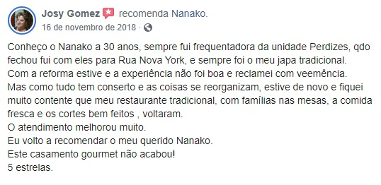 Outro restaurante que iniciou suas atividades nos anos 80. O Nanako, desde então, foca suas atividades no ramo da culinária japonesa.